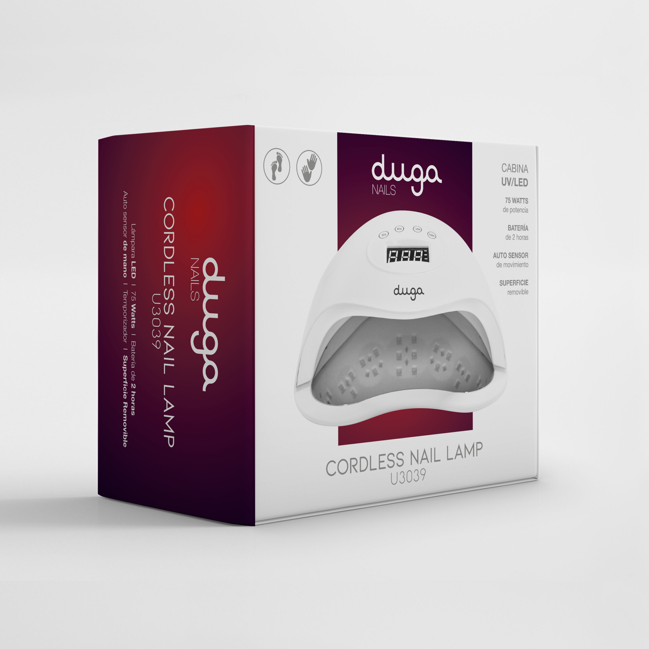 Con diseño elegante, potencia de 75W y tecnología LED de doble fuente de luz, esta cabina inalámbrica ofrece resultados rápidos, uniformes y seguros. Ideal para geles UV y LED, su superficie removible y sensor automático de mano la hacen práctica y versátil para manicuristas.